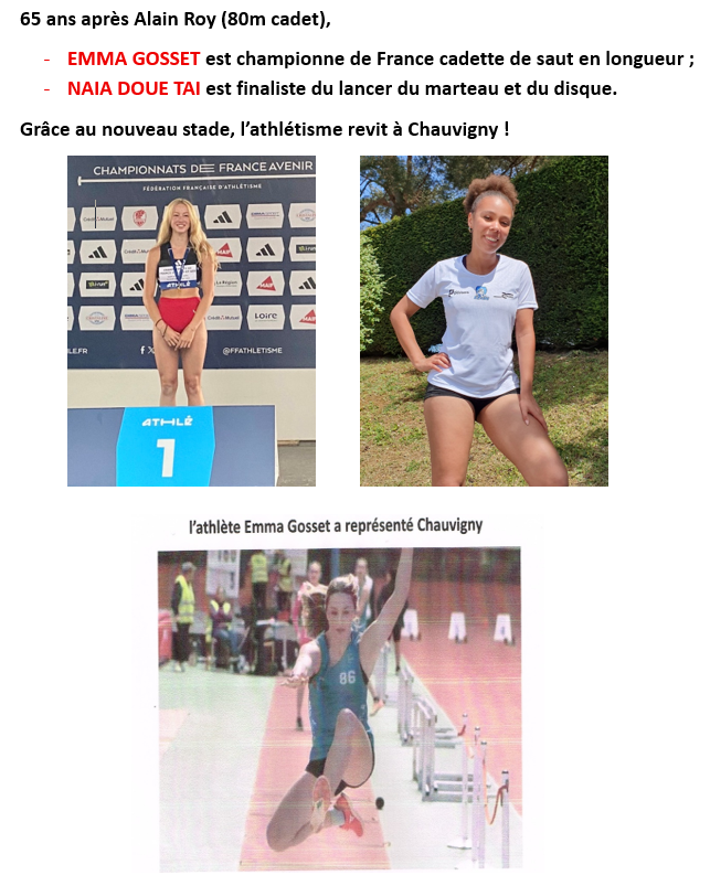 Deux chauvinoises brillent aux championnats de France FFA 2025